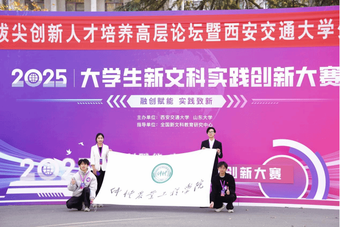 11月29日至30日,由全国新文科教育研究中心主办,西安交通大学、山东大学承办的2025年(第二届)大学生新文科实践创新大赛决赛现场赛在西安举行。我校遴选推荐4个项目参加省赛,所有项目取得全国决赛资格。在全国总决赛中经过激烈角逐,最终荣获银奖2项、铜奖1项和优秀奖1项的良好成绩,实现学校文科类创新赛事的新突破。